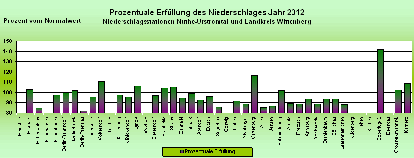 | Das Jahr 2012 war im Mittel der Regionalstationen mit -0,6 bis 1,9 Kelvin Abweichung zu fast temperaturnormal, mit 87 bis 124 Prozent niederschlagsnormal und mit 68 bis 125 Prozent sonnenscheinnormal.