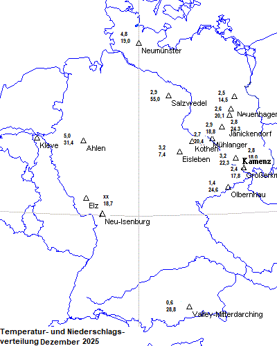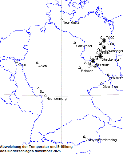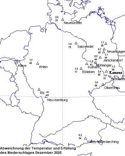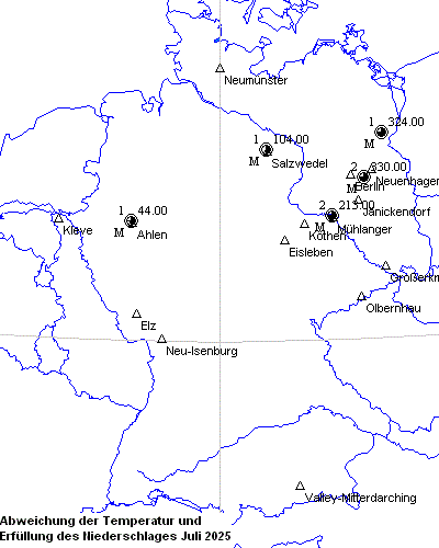 Verteilungskarten – Abweichung Temperatur & Erfüllung Niederschlag