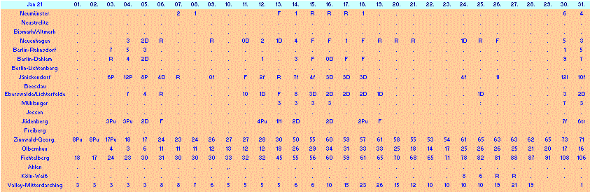 Schneehöhen der privaten Wetterstationen Januar 2021